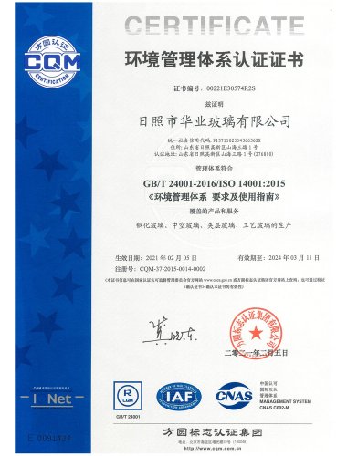環(huán)境管理體系認證證書