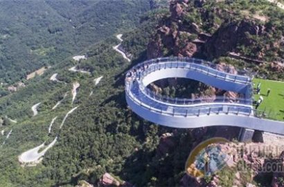 2018年6月12日,河南省新密市,經過8個月的建設,伏羲山旅游區(qū)的懸空玻璃環(huán)廊正式落成,游人走在環(huán)廊上感受“天空漫步”的刺激體驗。據了解,伏羲山玻璃環(huán)廊將于6月16日起對外開放,該橋采用無斜拉索設計,整體工程用鋼量超3000噸,橋面使用150塊三層鋼化夾膠玻璃鋪設,距離峽谷地面360米,環(huán)廊伸出懸崖30米。比美國科羅拉多大峽谷號稱“世界第八大奇跡”的玻璃環(huán)廊還長出近9米,可謂是“世界很長的高空玻璃環(huán)廊”。